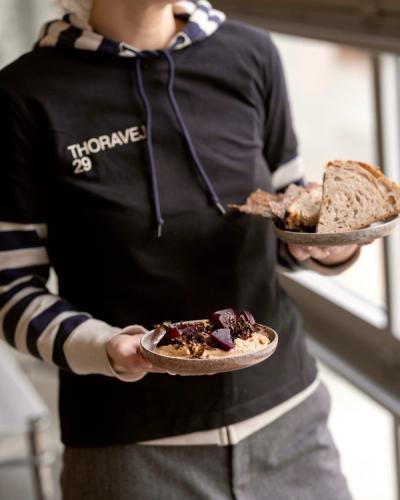 Thoras står på et grundlag af økologi, årstid, stedsans og grønne måltider. Vi bruger sæsonens råvarer, når vi sylter, fermenterer og hengemmer og eksperimenterer med greb fra hele verdens køkkentraditioner. For alle er velkommen om langbordet i Thoras.
