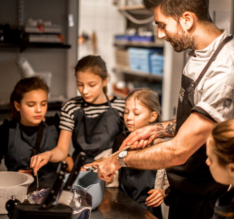 Her får børnene muligheden for at invitere en af deres voksne med i køkkenet, hvor vi skal lave en masse lækre, søder sager – der kommer til at smage ekstra godt, når vi laver dem selv med gode råvarer og uden nogen form for tilsætningsstoffer. Der skal minimum købes to billetter til vores arrangementer for to generationer. Vi anbefaler, at børnene er fyldt 8 år. Der arbejdes i grupper, selvfølgelig sådan at børnene er sammen med den voksne, de følges med.