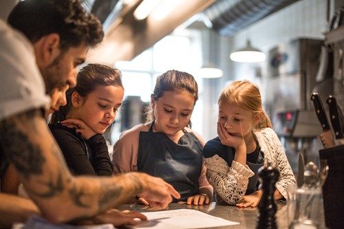 På Kulinarisk Fritidsordning kommer børnene i køkkenet og får friske råvarer og godt værktøj mellem hænderne. Over otte mandage lærer børnene om grundsmage, råvarer i sæson, tilberedningsteknikker, at lave mad fra bunden og meget mere.