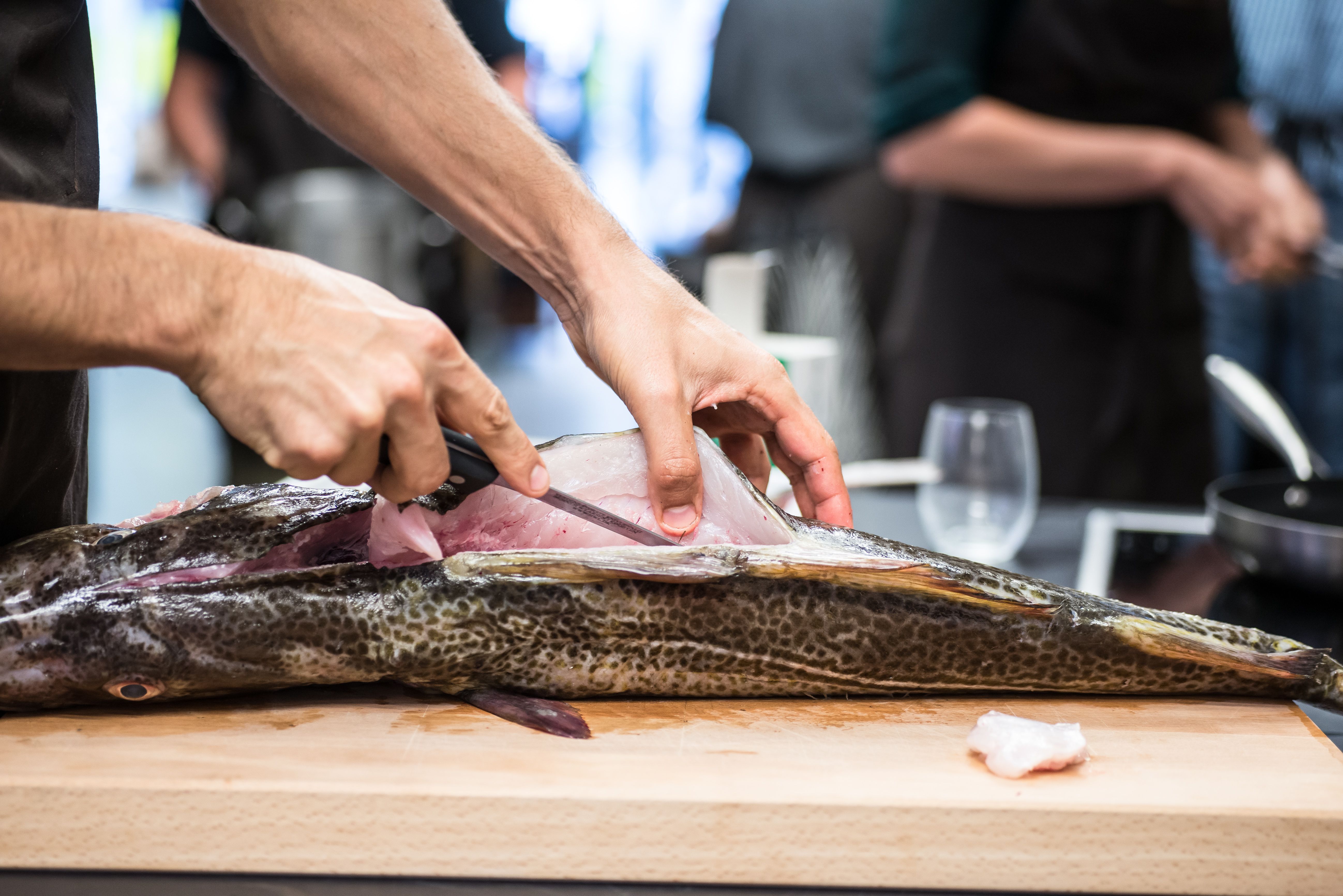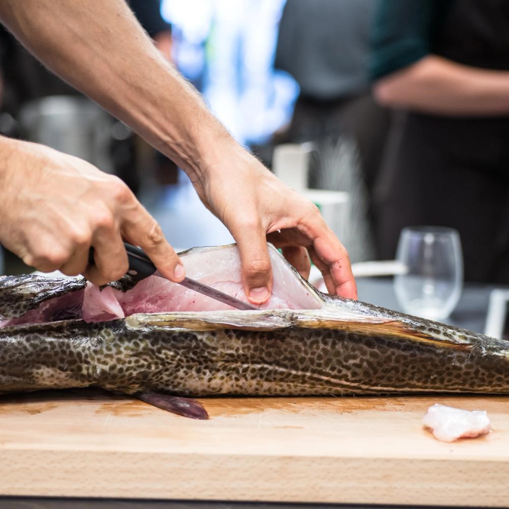 Hvis du holder af at spise fisk, ved du, at friske fisk af høj kvalitet, den rette håndtering og omhu i tilberedningerne gør hele forskellen. På dette kursus dyrker vi den sublime fiskeoplevelse. Vi kommer hele vejen rundt, så du bliver tryg ved at arbejde med hele fisk med skæl, ben og glinsende øjne, og du forlader kurset med nye færdigheder og et repertoire af tilberedninger og retter, der vil løfte dit fiskekøkken mange takker. Den overdådige fiskemiddag, der er resultatet, nyder vi med gode vine.