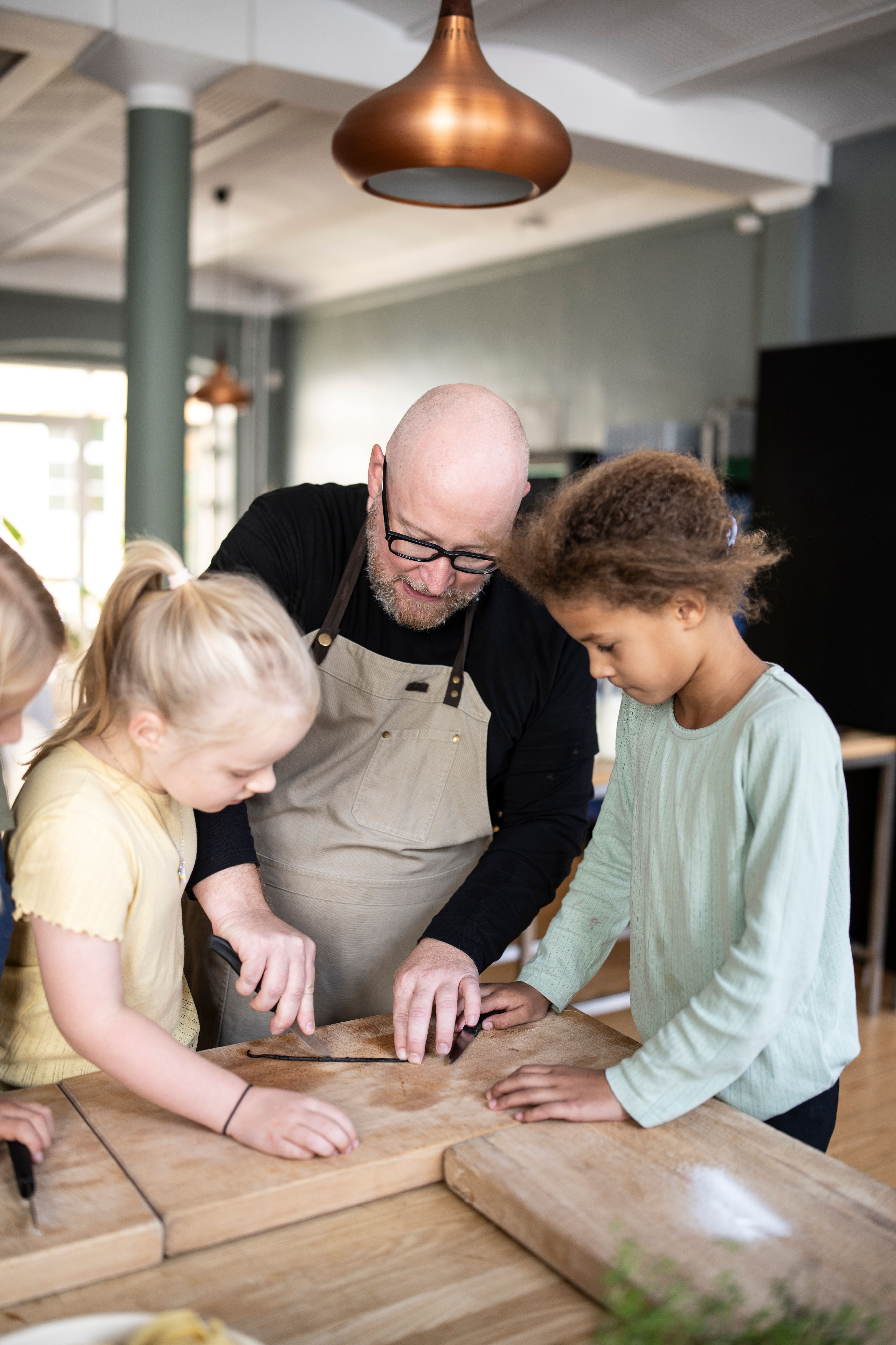 På Kulinarisk Fritidsordning kommer børnene i køkkenet og får friske råvarer og godt værktøj mellem hænderne. Over otte mandage lærer børnene om grundsmage, råvarer i sæson, tilberedningsteknikker, at lave mad fra bunden og meget mere.