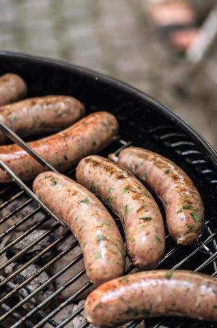 Du får din egen produktion af pølser med hjem til stegning derhjemme. Pølserne er også velegnede til frysning, hvis du pocherer dem først.