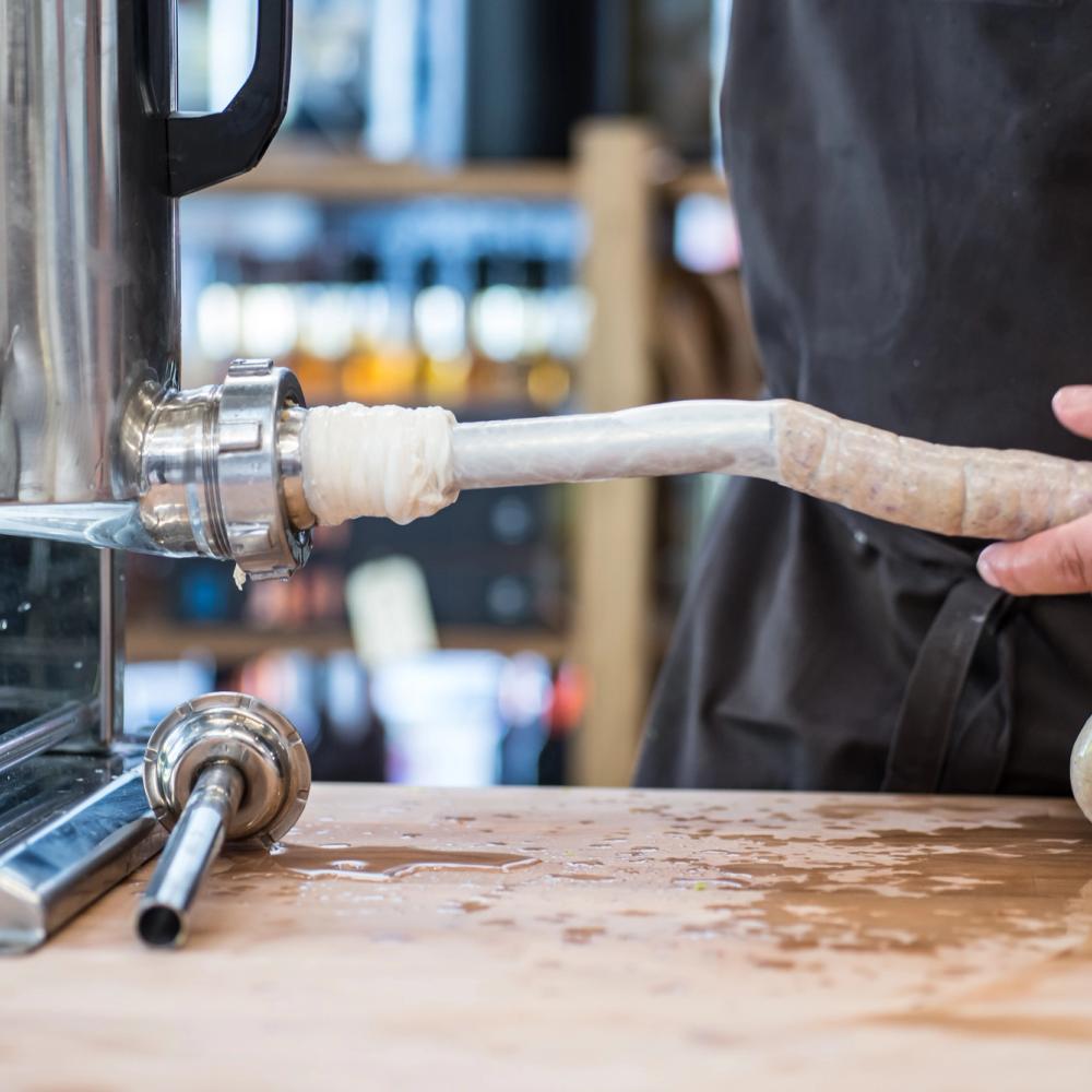 Lær pølsemageri fra en sand mester i det ædle håndværk, Philip Dam Hansen fra økologiske landbrug Troldgaarden. På kurset lærer du at lave velsmagende stegepølser af kød og spæk fra Troldgaardens berømte, økologiske og fritgående grise af den danske og næsten glemte landrace, den sortbrogede gris. Vi gennemgår grundteknikkerne bag at stoppe pølser af høj kvalitet, så du nemt kan forsætte i dit eget køkken. En god pølse kræver både omhu og godt kvalitetskød, men også valget af spæk og krydderier er afgørende for den rette smag. Gennem valget af krydderier får du mulighed for at sætte dit eget personlige præg på det endelige resultat.
