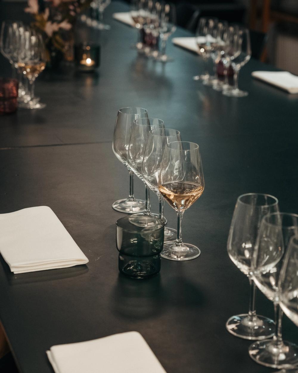 Middagen serveres smukt anrettet, så alle råvarernes kvaliteter fremhæves i deres prægtighed, når I nyder middagen med udvalgte vine fra de bedste producenter og vinmarker i Verden.