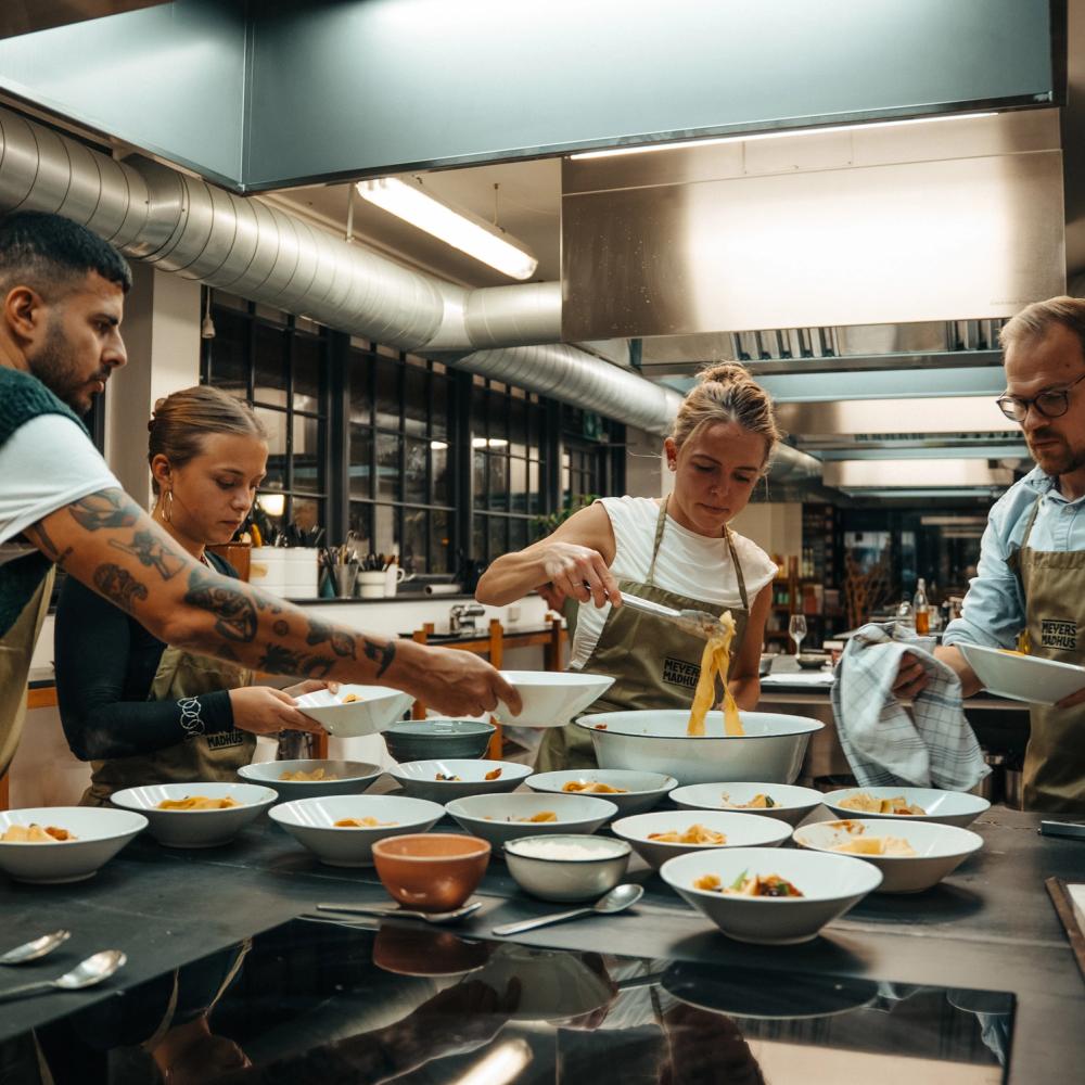 På en gastronomisk teambuilding i Meyers Madhus oplever I fantastiske råvarer, dygtige kokke, state-of-the-art køkkener og selvfølgelig: Masser af velsmag.